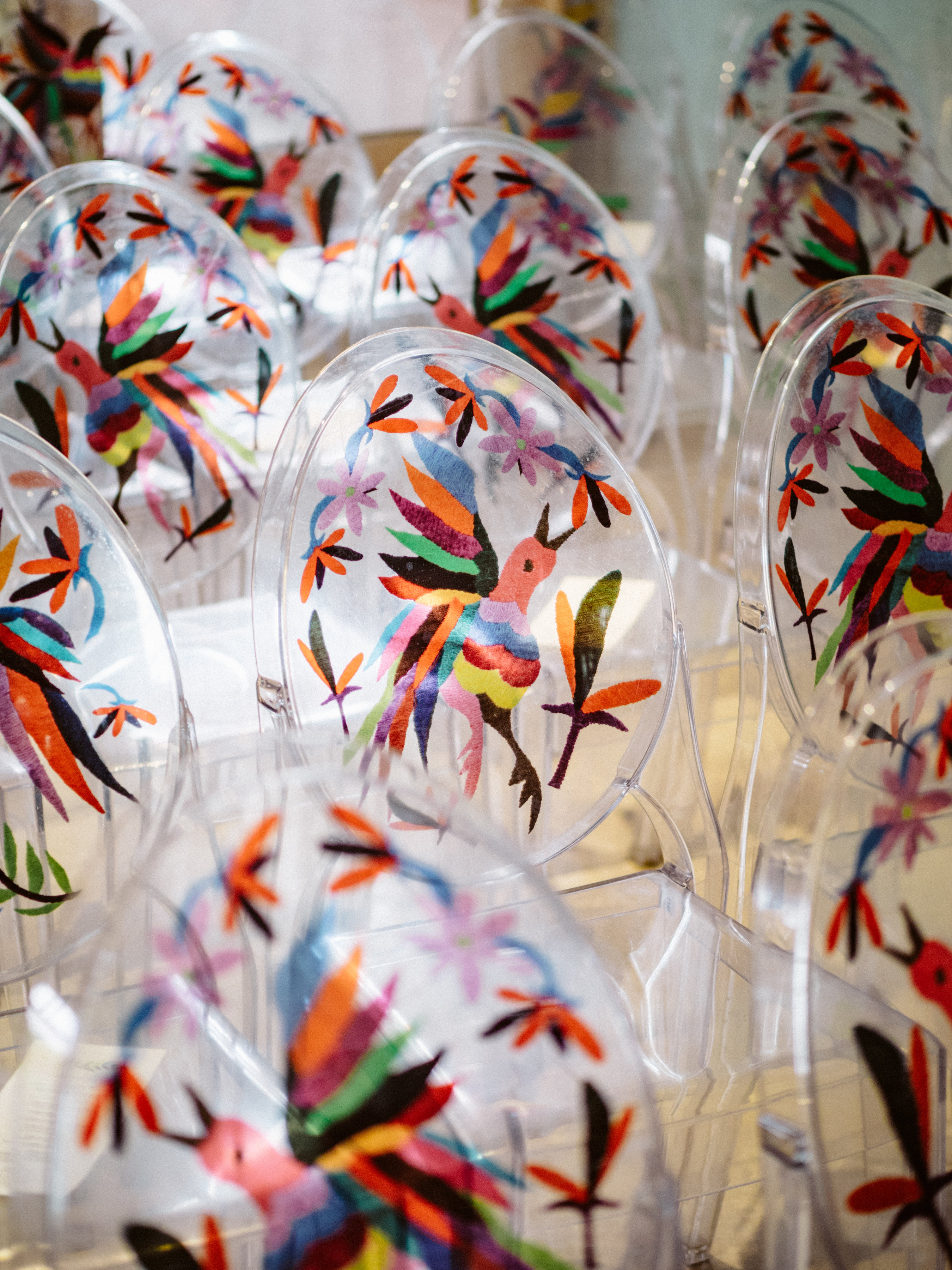 The Otomi print didn’t stop with the pillows. We also added several different but complimentary designs of Otomi patterns to the ceremony and reception seating which completely made this design in my opinion. So many claim that the seating chosen doesn’t matter, but this celebration definitely proves otherwise.
