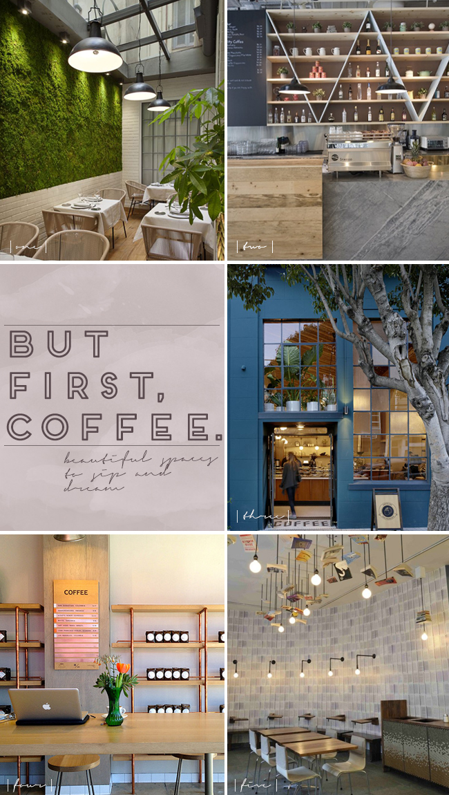 I truly have a deep love for great coffee houses – especially ones that are decorated beautifully, and make you feel like a guest in someones home. Comfort and aesthetics are important to me because I usually set up camp for a while to work or read. Above are a few of my favorite images of coffee houses from around the world – I would love to have a drink in every one of them!
