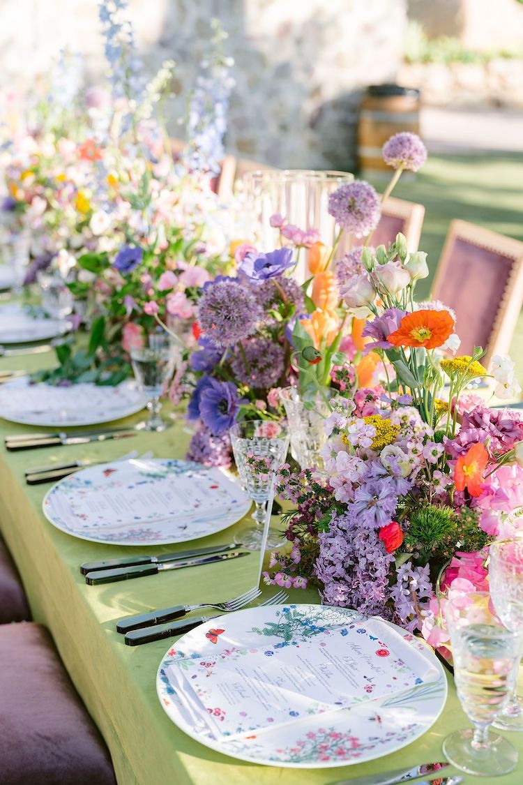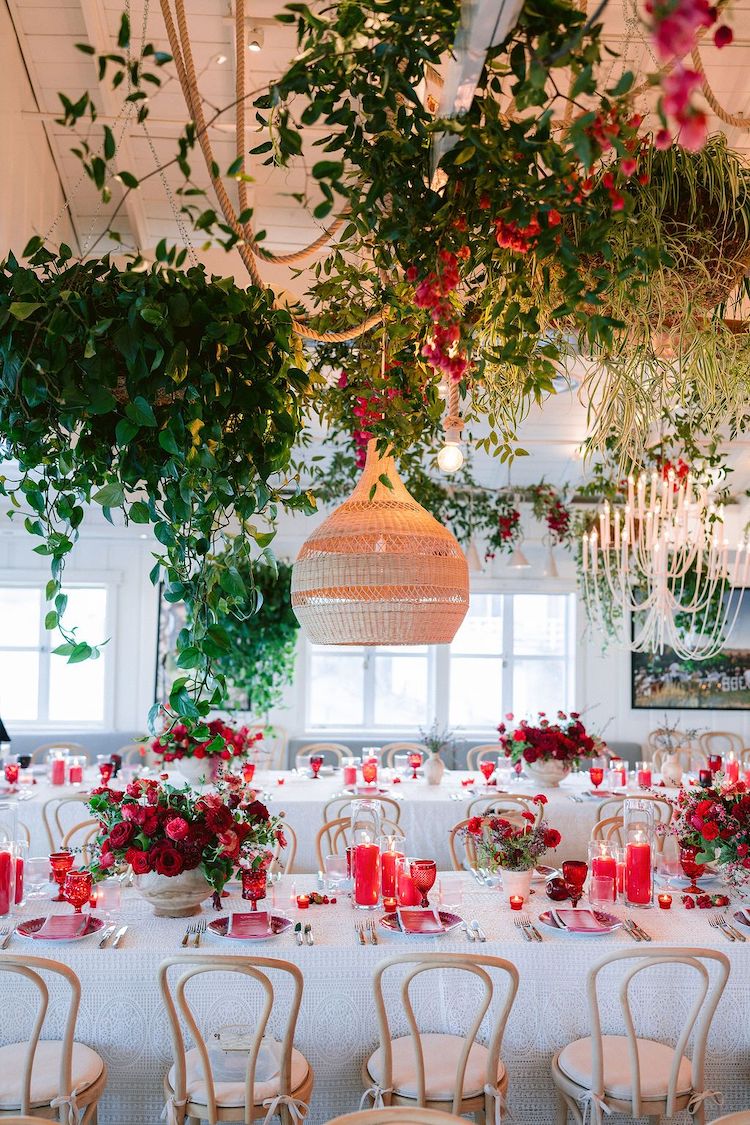 Chandler and Matt’s wedding style was a dream. Color explosion was the vibe all weekend long starting with a welcome cocktails (not pictured) and a super saturated red, red, red rehearsal dinner. The wedding was every color you could imagine and filled with whimsy and joy with the most playful touches at every turn.