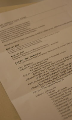 This involves creating the time line, floor plan, power requirements for bands, must have shot lists for photo and video, etc.