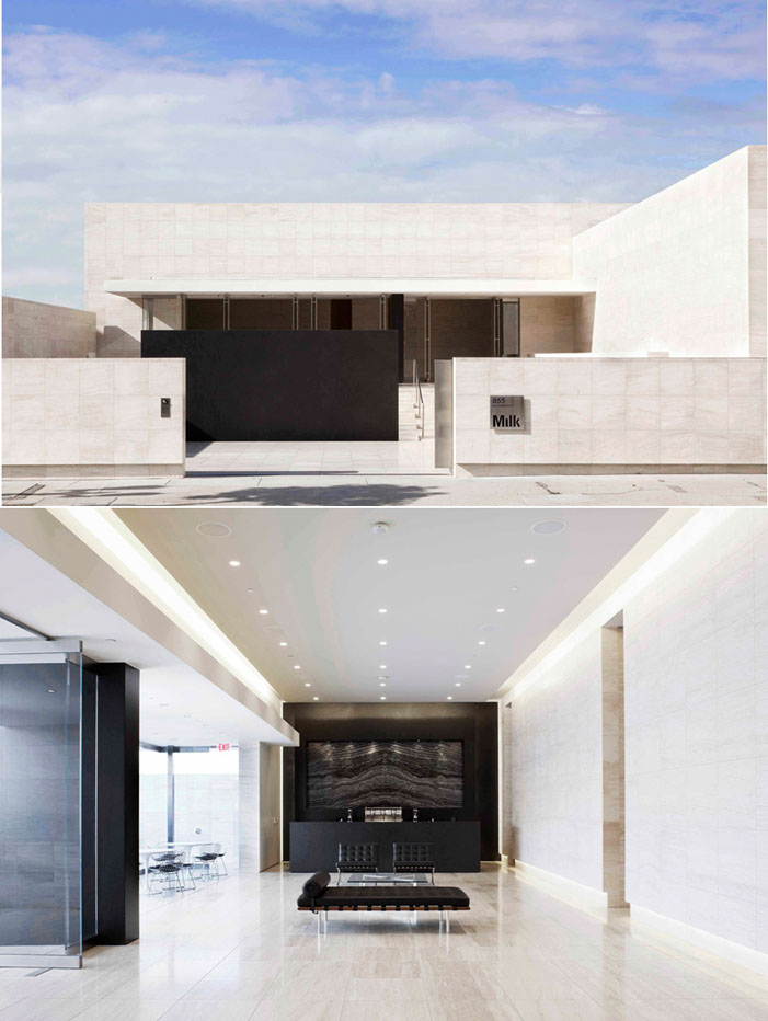 We were so thrilled to work at Milk Studios for Brian & Chad’s wedding. They rarely if ever allow weddings to take place in their space which made it that much more special, but beyond that the design of the space is so inspiring. The level of detail that went into selecting the materials for the space from the graphite to the marble to the sparse yet luxurious furnishings makes for a very refined yet modern feel. Cohesive design makes my heart sing, so when I see it done perfectly, I get a little tingly all over. Below are some more images of the raw space which inspired every decision we made for Brian and Chad’s day.