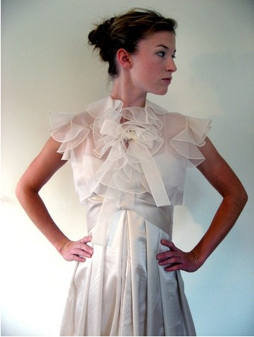 I know I made mention of my love for Elizabeth Dye’s gowns a few weeks ago, but I have to admit that my love has grown into a completely unhealthy form of obsession that has resulted in stalking her blog and work over the internet. Her designs are so charming, lovely and feminine and my only disappointment is that she wasn’t around when I had my wedding gown made. It’s so bad that I’ve begun trying to think of any possible excuse for her to design a dress for me. Any ideas?