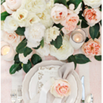For anyone who follows us, our adoration for Holly Flora comes as no surprise! She’s our secret weapon for breathtaking florals which have been shown in many, many of the weddings we design. With their Bohemian meets Modern style and a floral background that spans two decades, their team is truly able to execute any style you could dream up. They are also the floral designers behind the “Just Peachy” photoshoot I designed for this month’s issue of Darling. Going for a more classic feel, we sourced ceramic vessels with sweet pedestals and had Holly & Becky overflow them with dreamy garden roses and creamy camellias.The ladies also decked out everything from the cake to the cocktails with more of their lovely blooms. Check out both the Holly Flora website and our website to see so much more of these ladies’ beautiful designs.