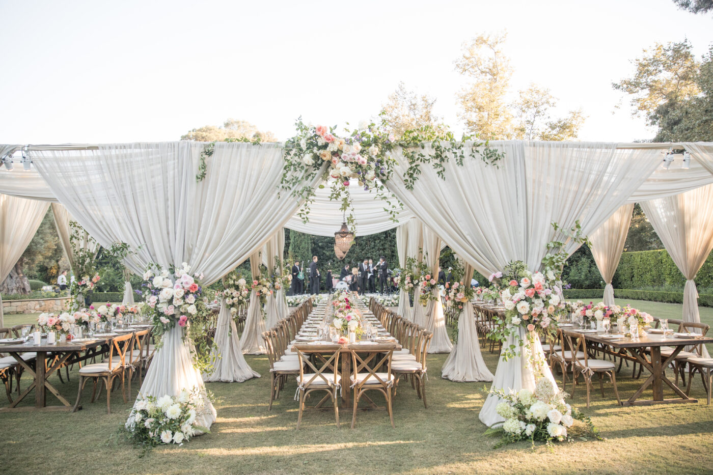 We loved this beauty of a celebration at Villa Sevillano. 80 of the couple’s closest guests, a super sweet and romantic vision and course after course from Room Forty before guest’s danced the night way to a curated Latin inspired playlist from one of West Coast Music’s top bands. But my favorite detail was the prettiest structure created with vintage pendants, floral details and feasting tables filled with the couple’s nearest and dearest. Enjoy the images created by Lauren & Abby, some of our favorite wedding photographers around.