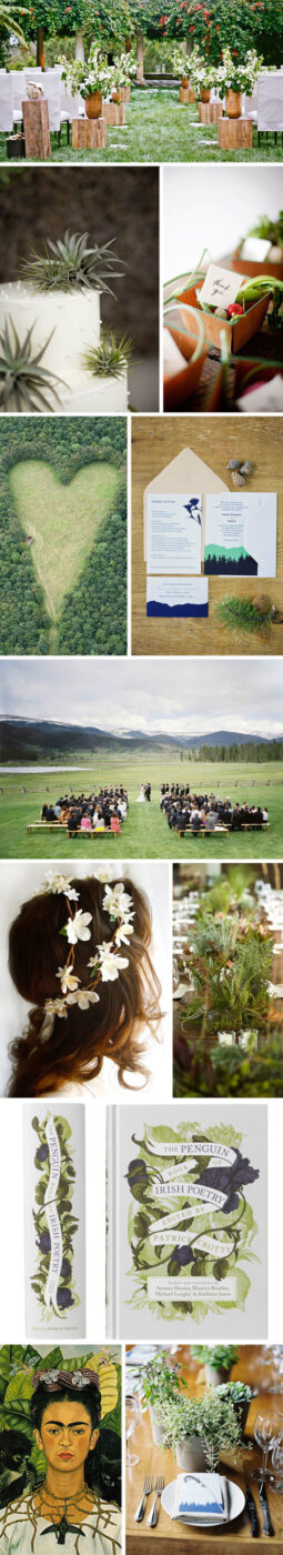 Last Row: Frida Kahlo Self-Portrait/Potted Tablescape from Amelia & Danny’s Colorado Wedding
