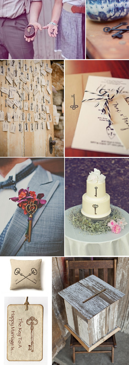 Two of my friends recently got engaged while revisiting their love bridge. I have always been smitten with the idea of love locks and a couple of my family members have theirs snuggled away on the Hohenzollern bridge in Cologne, Germany. If you have your own love lock, keys (& locks) can be both sentimental & whimsical accessory to your wedding detailing from engagement shoot, to boutonnières, to cake. Incorporating them into your escort cards doubles as a favor, tie onto a strand of leather and use as a necklace or decoration. Cards with, “the key to a happy marriage is…” are a nice way for your close family and friends to share their silly and/or insightful wisdom, which can be tucked away into a box for later musings.