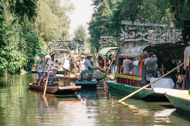 In lieu of a traditional welcome party, Lana and Adam decided to take guests early to one of Mexico City’s most celebratory tourist attractions, the floating gardens of Xochimilco. Over a hundred guests hopped on to a dozen boats for a true Mexican fiesta complete with Quesadillas, elote, Mariachis and lots and lots of beer. This event definitely prepared everyone for all the couple had in store throughout their vibrant and playful Mexico City wedding weekend. Take a peek at the lovely images from Steve Steinhardt and come back soon for more from the weekend!