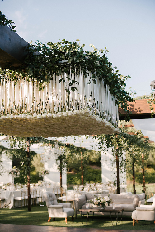 Lindsay and James were a dream to work with. Kind, great style and never let the little things take away from the importance of their day. They chose to marry at Villa Sevillano, the gorgeous Santa Barbara estate with gardens to die for. We loved working with them to create a traditional white wedding in the rose garden of the estate, but it was their custom structure on the polo field, complete with a 700 rose chandelier over the dance floor that really got us going. Beautiful textiles, regal golds, crystal and roses everywhere made this one of our most coveted designs of the 2017. If you would like to see a bit more into the process, check out the time lapse we had created of the structure or just scroll down to see the beautiful images captured by Docuvitae.