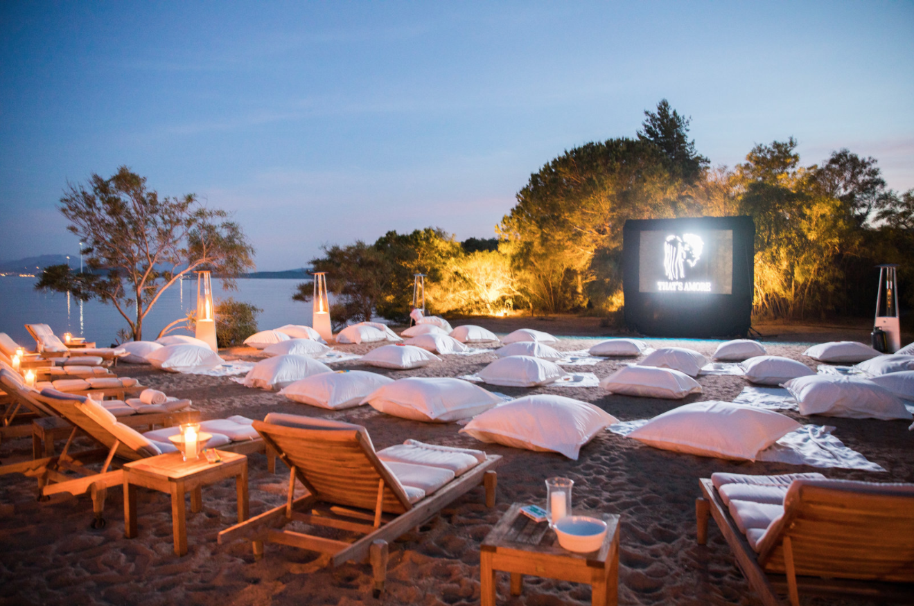 After the pizza party, Freddy & Olivia invited guests to the beach of Cala Di Volpe for a outdoor screening of Father of the Bride. We served freshly popped popcorn, hot cocoa and all the classic movie theatre candies while guests got comfortable on oversized pillows, blankets and chaise lounges. It was casual yet magical and eased guests into the celebration perfectly. Check out these images by Lauren and Abby and come back soon for the Friday night welcome party, which happened to be my personal favorite design of the weekend!