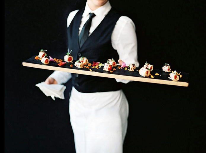 4. Lastly, if you want most guests to indulge during cocktail hour, pay attention to the size of the items being served. As a general rule, if it’s more than 2 smaller bites, it should be avoided or you can assume many guests will pass. For most people, it’s awkward to hold a cocktail, eat something big and potentially messy all while standing and socializing.