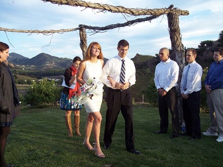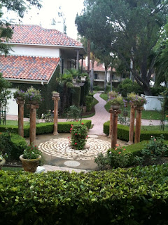 Friday evening we headed to the venue for our rehearsal and the skies had finally started to clear. We ran the processional and recessional a couple of times and everyone seemed comfortable with the ceremony, so we returned to the Wine Cellar at Westlake Village Inn for a beautiful rehearsal dinner hosted by my lovely in-laws. Janet had worked with Beth and Laura to design what could have been a wedding itself it was so wonderful!