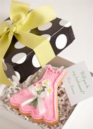 Ryan and I had decided that we wanted to keep our wedding party small and thought just three people each would be perfect. So, this week was very exciting for me as I asked my three bridesmaids to be in my bridal party, and they all said “yes”! My sister had done a blog post a while back about this adorable company, Flour Pot Cookies, that makes incredible cookie designs. They have a bridal line that includes “will you be my bridesmaid” cookies – too cute! I knew I had to use them to ask my bridal party to be a part of this special day.