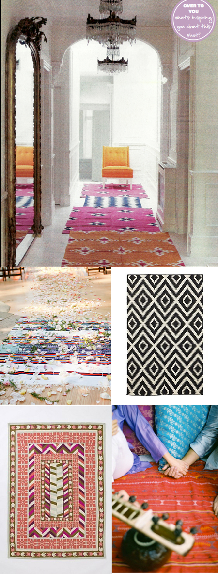 I fell in love with that vintage rug from Hannah’s post yesterday, didn’t you? A beautiful rug can be the perfect addition and make a wedding feel more residential as well as put the finishing touches a wonderfully designed room. Here are just a few of my favorites that would be perfect for both your wedding celebration and subsequently in your home…