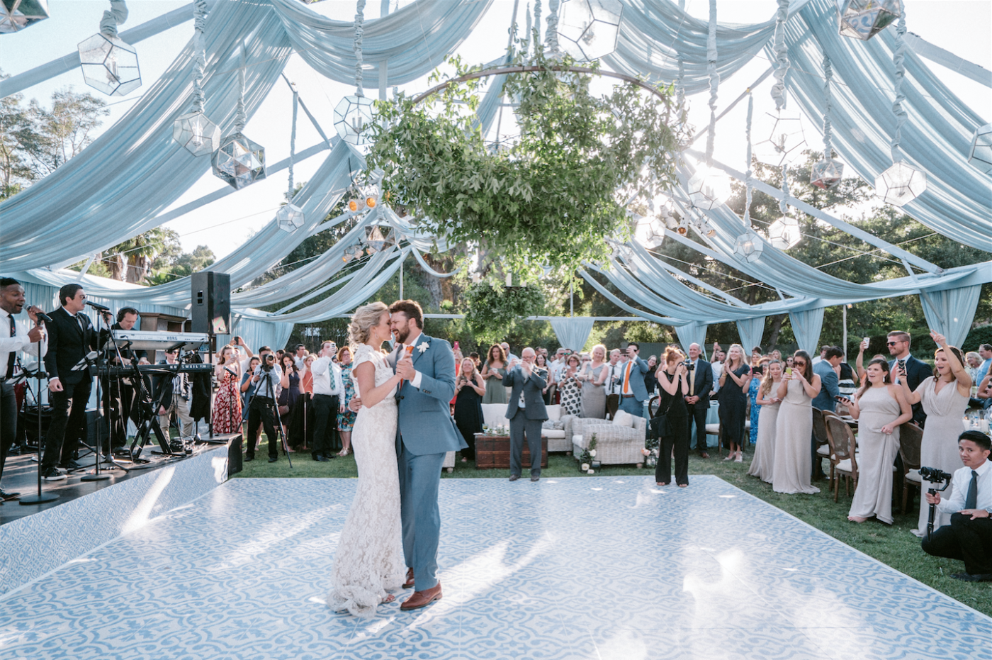 Sydney & Ray’s day was a breath of fresh air. Locally grown citrus, shades of soft blues and sweet, charming moments in every touch from the custom sketches on the stationery to the cute as pie sugar cookies donning the faces of their puppies. Ojai Valley Inn was the perfect backdrop for a day that was effortless, organic with just the right amount of polish. And she let us get super creative by custom building a slate blue canopy with a spanish tile dance floor and bars for their celebration. That’s a risk that we we think fully paid off. Enjoy the images from Steve Steinhardt and come back tomorrow for a close up of all the custom stationery and gifting we created for this lovely Texan couple.