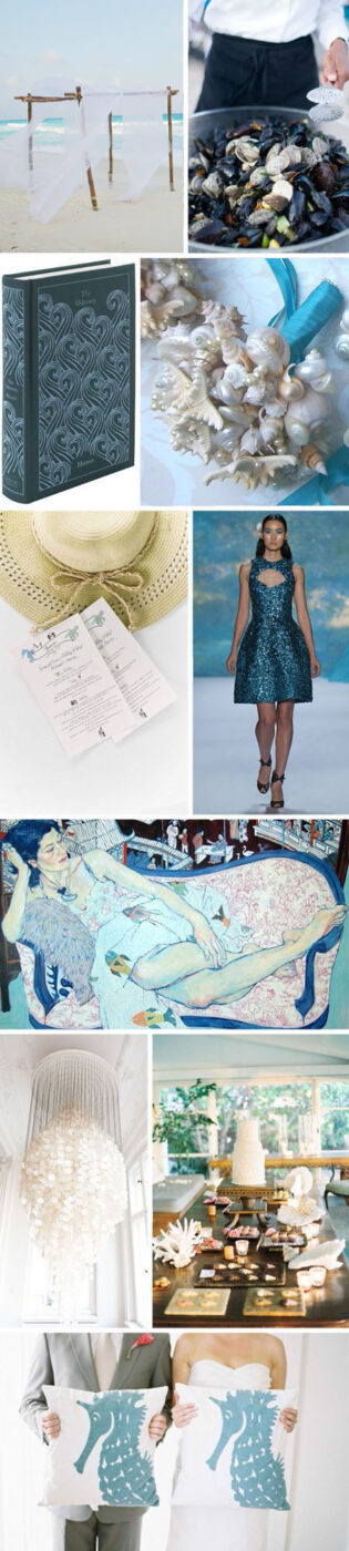 Fifth Row: Shell Chandelier via This is Glamorous/Nautical Cake Display from Laura & Jeremy’s Kona Wedding
