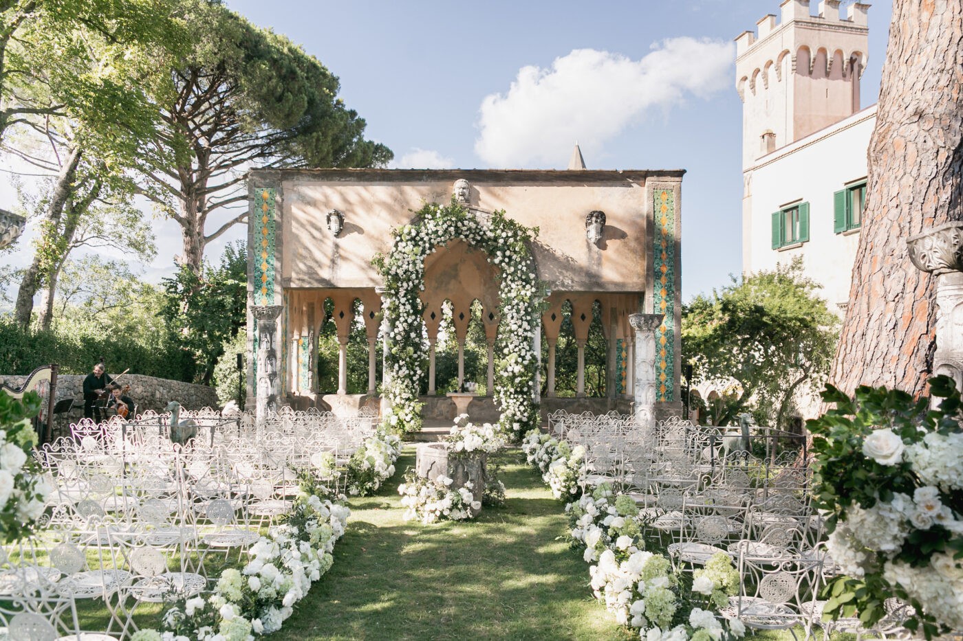 Villa Cimbrone is easily one of the most beautiful properties on the planet and we were so honored to create Rachel and Alex’s wedding at such a stunning location. After four events, guests were ready to celebrate the real reason they were all in Italy. The ceremony took place in the gardens followed by cocktail hour on the most amazing terrace you’ll ever see. After watching sunset overlooking the Amalfi Coast, guests headed to a twinkly dinner with an 18 piece band straight out of the big band era. A true black tie affair, the celebration was a dream come true for the couple and every guest. Enjoy the images from David Bastianoni and if you missed it, take a peek back at the wedding week including the welcome party, bridal luncheon, groom’s luncheon and rehearsal dinner.