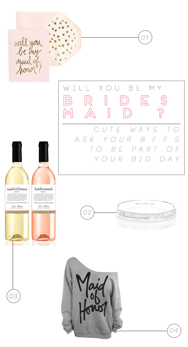 01: Will You Be My Maid Of Honor Card | 02 : You & Me Bridesmaid Bangle | 03 : Personalized Wine | 04: Maid Of Honor Sweatshirt